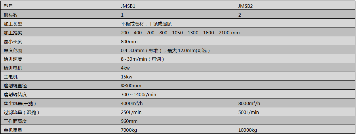 吉力佳JMSB系列其原理是利用含磨料的無(wú)紡纖維SB(Scotch-Brite)加工的拋光輥,對(duì)金屬板材表面豎向旋轉(zhuǎn)拋光的同時(shí),并做高速橫向往復(fù)擺動(dòng)的拋光作業(yè)。主要工藝特點(diǎn)是降低磨砂或直紋加工后的板面粗糙度,使其表面觸感更細(xì)膩,從而獲得SB(Scotch-Brite)表面,提高磨砂板的抗污染性。